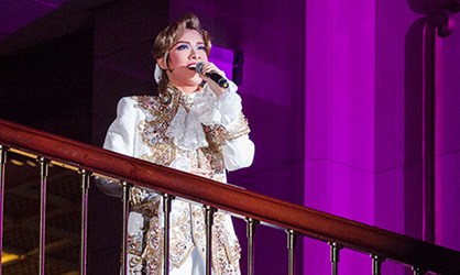 在舉行公演的國家戲劇院華麗大廳舞台,由各演員發表3首歌曲後,到了第4首,則由花組首席明星明日海 里奧,從會場2樓登場,在緩緩下樓的同時高歌一曲,並將整個會場的氣氛帶往最高潮。第5首則由4名演員合唱『凡爾賽玫瑰』充滿華麗氣息的代表歌曲-「因為有愛」。